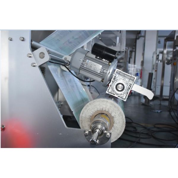 | Film releasing part: air shaft fix the film tightly, at the same time the film releasing motor drive it to pull the film up smoothly, when the film runs out, the machine will send the alarm single. | Printing and mark sensor: you can print production date/ batch number/ place of origin/ etc. Max. 4 lines character are acceptable, and you can choose the printer brand as well; mark sensor through capturing the color mark to tell machine the bag length. |